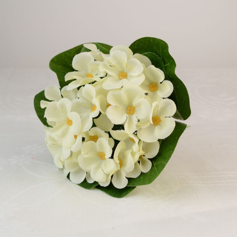 Selyem ibolya csokor, melynek magassága 17 cm. Apró virágai 3 cm átmérőjűek. Tavaszi dekorációk díszítőeleme lehet.