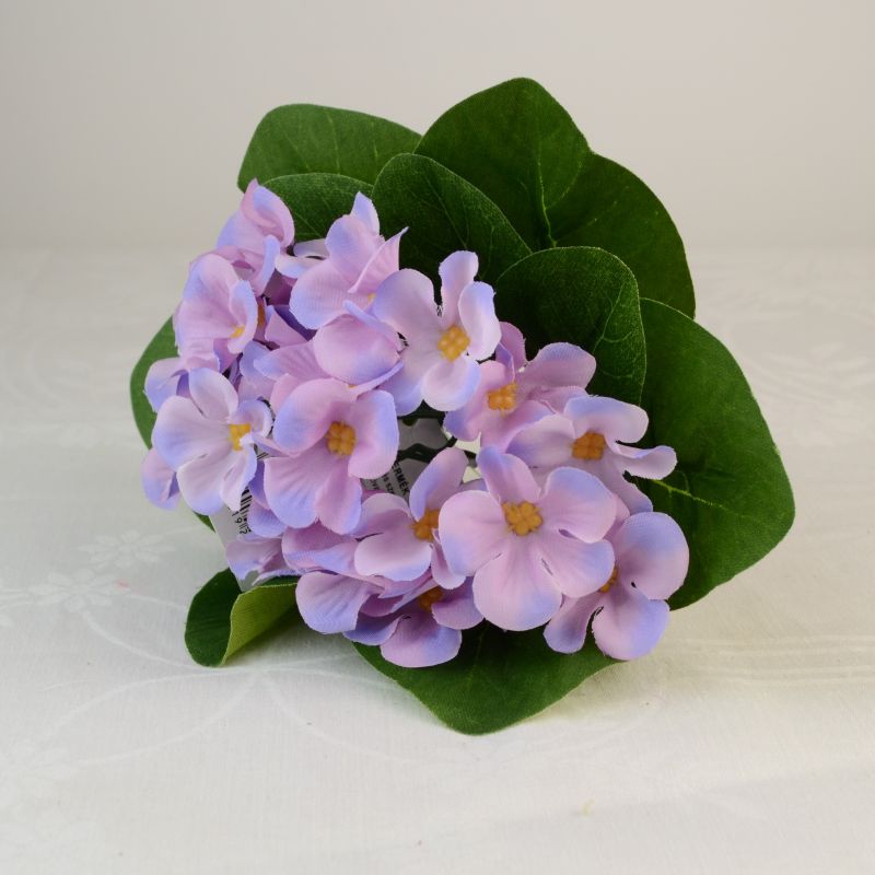 Selyem ibolya csokor, melynek magassága 17 cm. Apró virágai 3 cm átmérőjűek. Tavaszi dekorációk díszítőeleme lehet.
