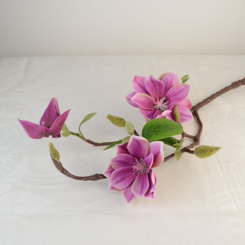 50 cm hosszú magnólia ág, mely két nyílott virágot és egy bimbót tartalmaz.