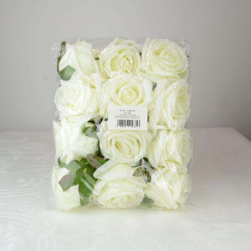 8 cm átmérőjű nyílott rózsa fej. Egy csomag 12 darabot tartalmaz. Koszorúkban, esküvői dekorációkban és kompozíciókban is jól mutat.