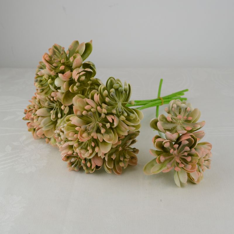6 szálas kövirózsás dekoráció, egy szál három kb. 5-6 cm átmérőjű kövirózsát tartalmaz. Őszi készítményekhez, kopogtatókhoz, koszorúkhoz ajánljuk.