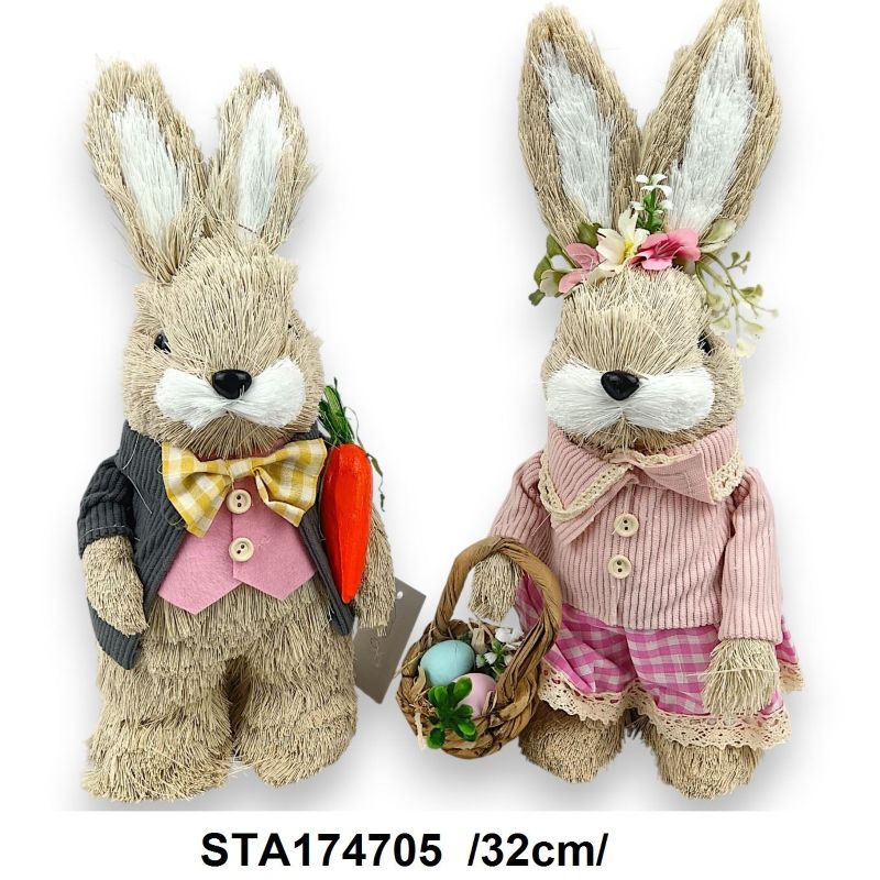 32 cm magas fiú és lány szalmanyuszi párban hungarocell belsővel. Az ár a két nyuszit tartalmazza.